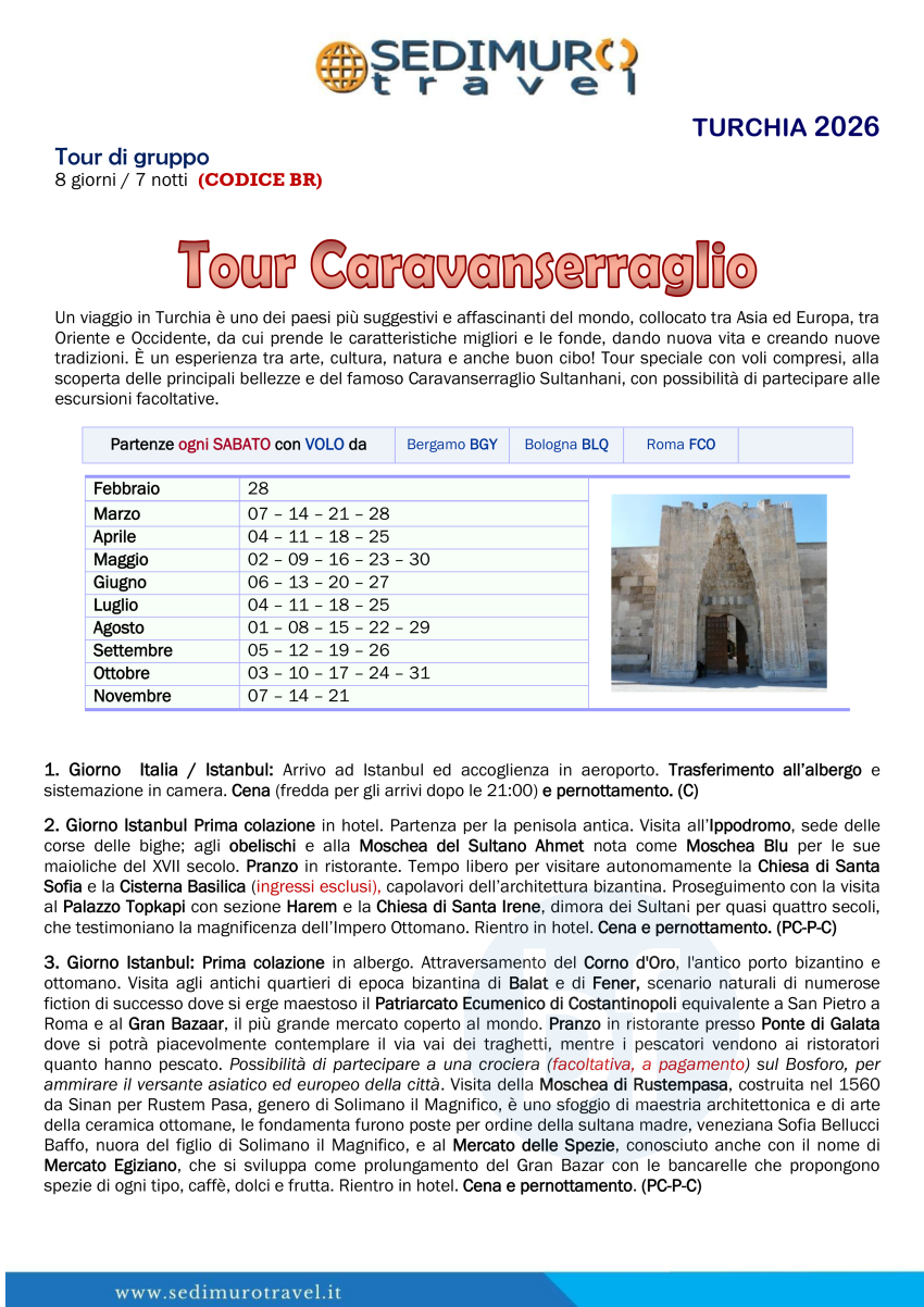 Tour Caravanserraglio con volo da BGY, BLQ e FCO ogni sabato 8 giorni